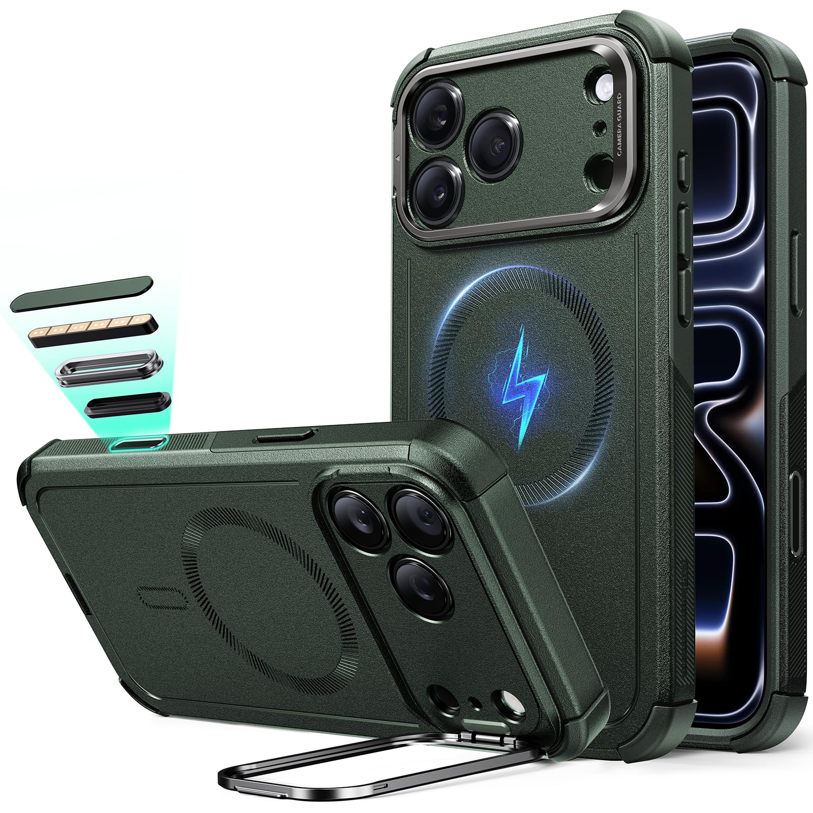 ESR Capa robusta para iPhone 17 Pro, proteção contra quedas de nível militar 7X com botão de controle da câmera, capa de telefone com absorção de choque, compatível com acessórios MagSafe, série Cyber magnética, verde