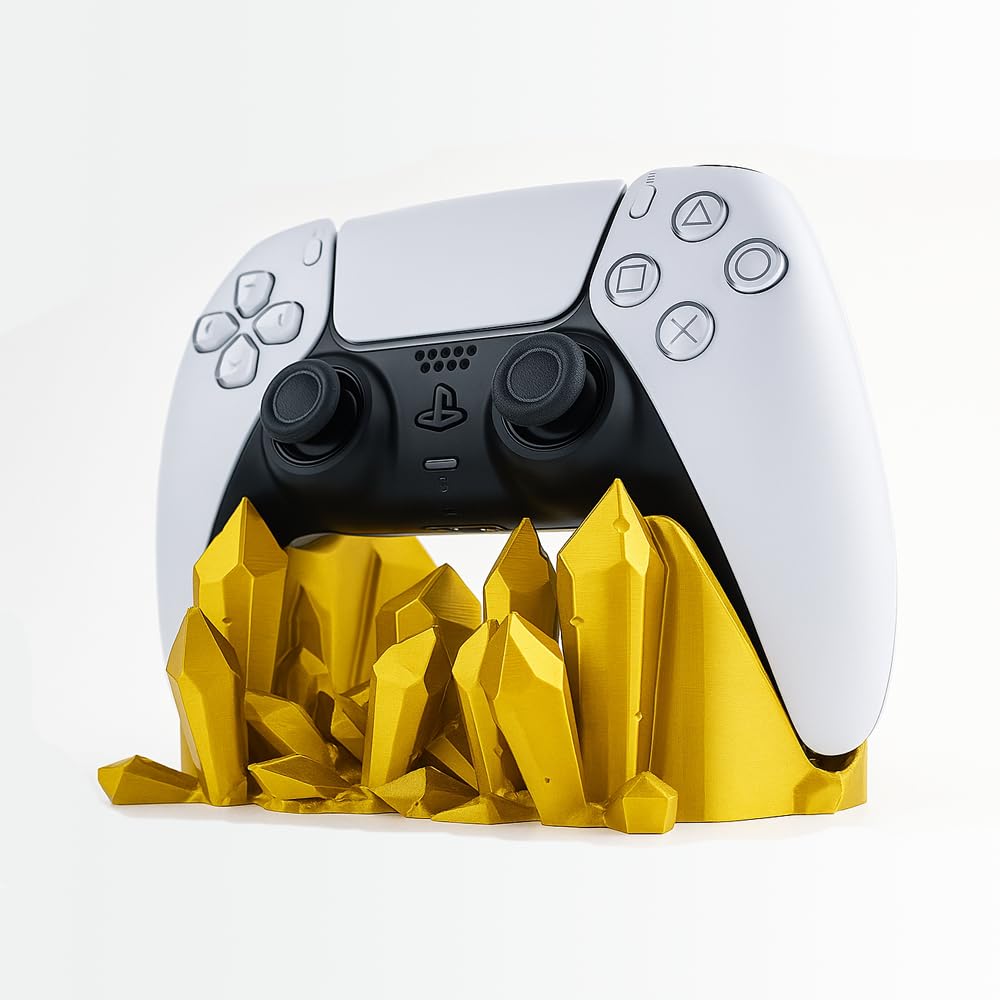 Eleve a apresentação do seu controle PS5 com este elegante suporte decorativo em formato de pepitas de ouro. Fabricado com acabamento metálico dourado brilhante, este suporte único combina funcionalidade com design artístico, transformando seu controle em uma verdadeira peça de decoração. Os cristais geométricos na base não só proporcionam estabilidade, mas também criam um efeito visual deslumbrante, simulando pepitas de ouro emergindo da superfície. Perfeito para manter seu controle organizado e em destaque na sua setup gaming, este suporte é ideal para jogadores que valorizam tanto a praticidade quanto o visual. O design ergonômico permite fácil acesso ao controle e protege contra arranhões e desgaste. Compatível exclusivamente com o controle DualSense do PlayStation 5, este suporte é um acessório essencial para quem busca adicionar um toque de sofisticação ao seu espaço gamer.