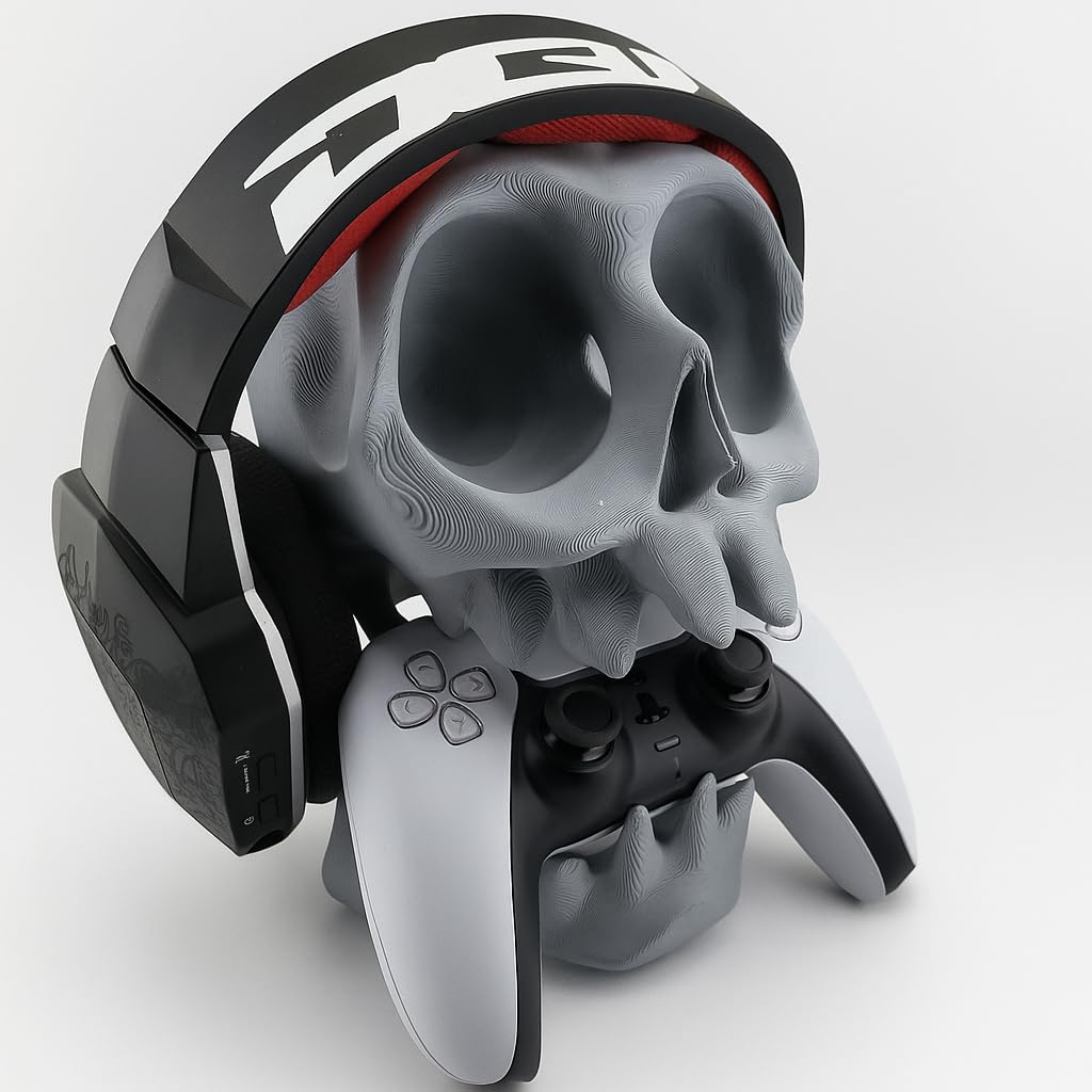 Apresentamos o suporte KingShield com design único de caveira, perfeito para organizar seus controles PS5, PS4 e fones de ouvido com estilo. Este suporte versátil pode ser instalado tanto na parede quanto posicionado sobre a mesa, oferecendo flexibilidade máxima para seu setup gaming. Em um elegante tom de cinza, o suporte apresenta um design robusto e detalhado em forma de caveira que adiciona um toque distintivo ao seu espaço. A estrutura foi desenvolvida especificamente para acomodar com segurança seus controles PlayStation e fones de ouvido, mantendo seus equipamentos organizados e sempre ao alcance. O design inteligente permite fácil acesso aos seus acessórios enquanto mantém uma aparência impressionante em seu ambiente de jogos. Ideal para gamers que buscam funcionalidade com um toque de personalidade em sua decoração. O suporte combina praticidade com um visual marcante, tornando-se uma peça fundamental para manter seu espaço gaming organizado e estiloso.