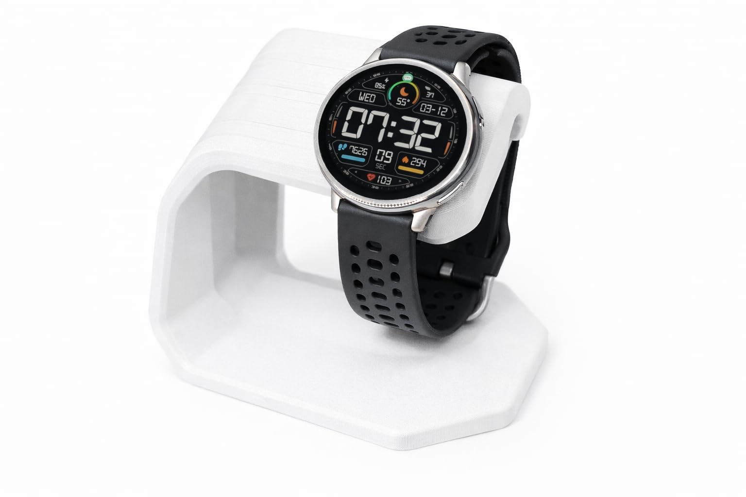 Este elegante suporte de carregador para Amazfit Active 2 e Bip 6 oferece uma solução prática e organizada para carregar seu smartwatch. Com design em formato de arco na cor branco, o suporte mantém seu relógio em uma posição ideal para visualização enquanto carrega, transformando-o em um relógio de mesa funcional. A estrutura robusta e estável garante que seu dispositivo permaneça seguro durante o carregamento, enquanto o design minimalista complementa qualquer ambiente, seja na mesa de cabeceira, escritório ou bancada. O suporte possui um encaixe específico para acomodar o carregador magnético do Amazfit, mantendo os cabos organizados e evitando emaranhados. Importante: este produto é apenas o suporte e não acompanha o carregador do smartwatch. Compatível com Amazfit Active 2 e Bip 6, este acessório é perfeito para quem busca praticidade e organização no dia a dia.