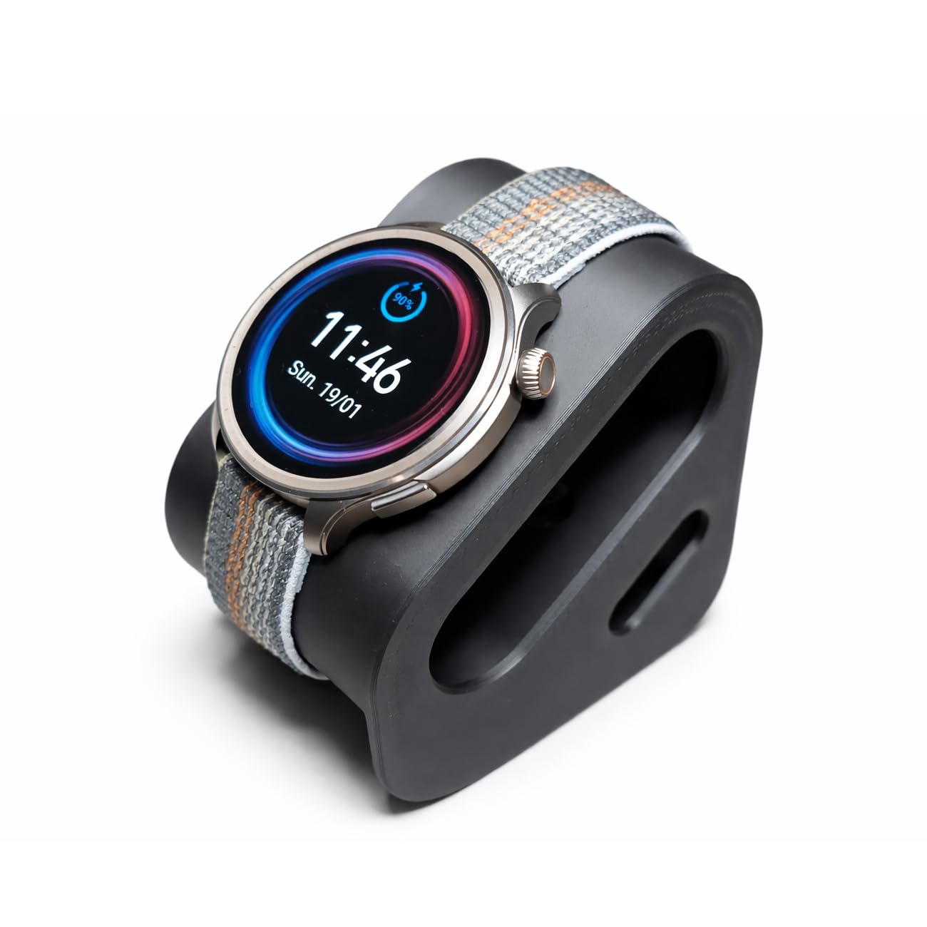 Este suporte de carregamento para smartwatch foi especialmente projetado para manter seu dispositivo organizado e sempre pronto para uso. Compatível com os modelos Amazfit Balance 1, 2 e T-rex 3, este acessório em cor preta oferece uma solução prática e elegante para carregar seu relógio inteligente. O design compacto e funcional permite posicionar seu smartwatch de forma segura durante o carregamento, protegendo tanto o dispositivo quanto o cabo carregador contra desgaste desnecessário. A estrutura robusta garante estabilidade, enquanto o acabamento discreto complementa qualquer ambiente, seja na mesa de cabeceira, escritório ou bancada. Este suporte mantém seu smartwatch em ângulo ideal para visualização durante o carregamento, permitindo que você acompanhe notificações e informações mesmo enquanto o dispositivo está sendo recarregado. Importante: este produto é apenas o suporte; o carregador não está incluído na embalagem. Ideal para quem busca organização e praticidade no dia a dia.