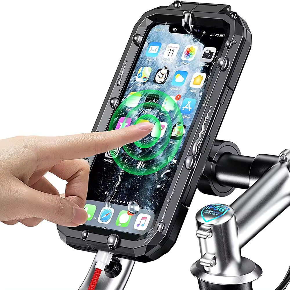 Design Compacto: Suporte para celular de design compacto e robusto, perfeito para usar em motos e bicicletas.