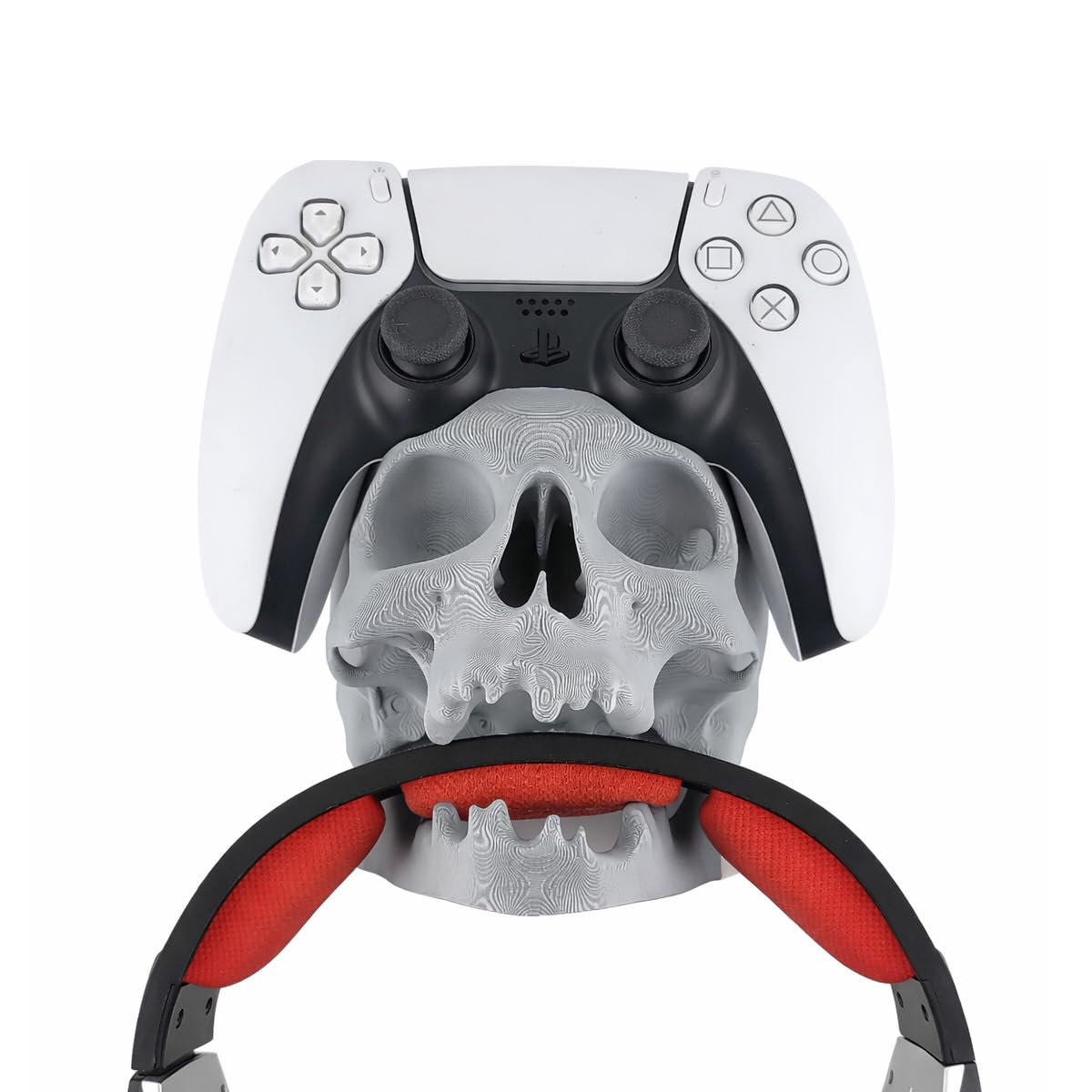 Apresentamos o suporte KingShield com design único de caveira, perfeito para organizar seus controles PS5 e fones de ouvido com estilo. Este suporte versátil pode ser instalado tanto na parede quanto posicionado sobre a mesa, oferecendo flexibilidade máxima para seu setup gaming. Em um elegante tom de cinza, o suporte apresenta um design robusto e detalhado em forma de caveira que adiciona um toque distintivo ao seu espaço. A estrutura foi desenvolvida especificamente para acomodar com segurança seus controles PlayStation e fones de ouvido, mantendo seus equipamentos organizados e sempre ao alcance. O design inteligente permite fácil acesso aos seus acessórios enquanto mantém uma aparência impressionante em seu ambiente de jogos. Ideal para gamers que buscam funcionalidade com um toque de personalidade em sua decoração. O suporte combina praticidade com um visual marcante, tornando-se uma peça fundamental para manter seu espaço gaming organizado e estiloso.